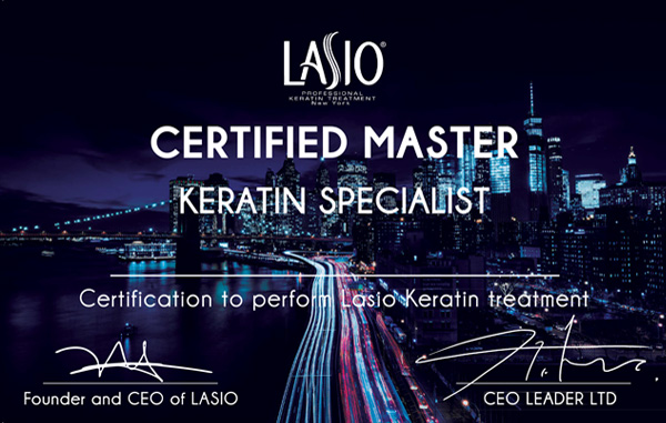 Εκπαίδευση στην πράξη, υποστήριξη και πιστοποιητικά παρέχονται σε όλους τους πιστοποιημένους ιδιοκτήτες κομμωτηρίων και στυλίστες που εκπαιδεύονται από τον Master Keratin Lasio expert και αποκτούν την πιστοποίηση LASIO HAIR EXPERT για την καλύτερη εφαρμογή LASIO θεραπειών στους πελάτες